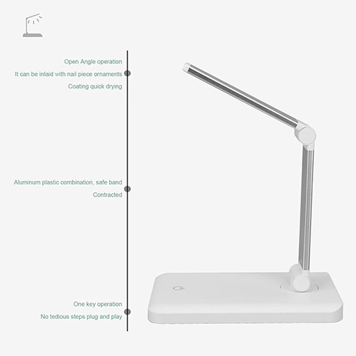 Foldable Design: Provide 10pcs high-quality LED beads, panel are foldable, 12W high power, gels faster than other nail lamp. Desktop Lamp Design: Our 160-degree rotatable vertical nail lamp with space-saving styling, efficiently provides temperature protection for your hands. Touch button design make it easier for using. Rechargeable with USB cable. Drying Almost Gel: including nail led gels, nail gels, nail hard gels, , nail sculpture gel, , and LED nail gel, etc. Suitable for both home and salon use, also as for your friends. Specification: Material: ABS Plastic Folding Size: 20x15cm/7.87×5.91inch Weight: 610g Item power: 12W Package Includes:
